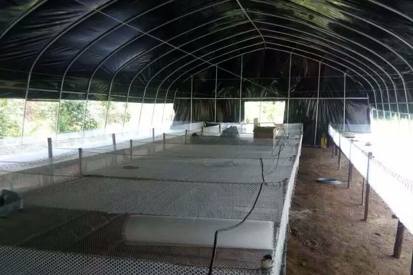 本大棚熱鍍鋅鋼管骨架,采用厚度15絲的黑白膜覆蓋,有效阻止光線進(jìn)入大棚,兩側(cè)卷膜通風(fēng),適用于菌菇種植。