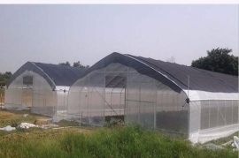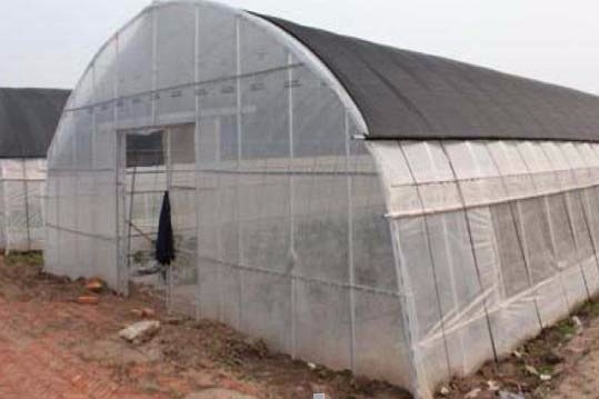 本大棚在薄膜的外面覆蓋了一層遮陰網(wǎng),遮陰網(wǎng)遮光率高,兩側(cè)可用卷膜桿卷起,使用非常方便