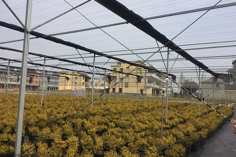 該系統(tǒng)實(shí)現(xiàn)夏季的遮陽(yáng)降溫,使陽(yáng)光漫射進(jìn)出溫室,防止作物受強(qiáng)光灼傷,同時(shí)降低溫室4-6度??蛇x用不同遮陽(yáng)率的幕布,或調(diào)節(jié)幕布的開(kāi)合,以滿足不同作物的生長(zhǎng)需求??棺贤饩€、防雹、遮陽(yáng)降溫。作物對(duì)光照要求有所不同,用戶在選擇遮陽(yáng)幕布時(shí)應(yīng)根據(jù)種植作物的種類,所在地區(qū)和所建溫室類型來(lái)配置。