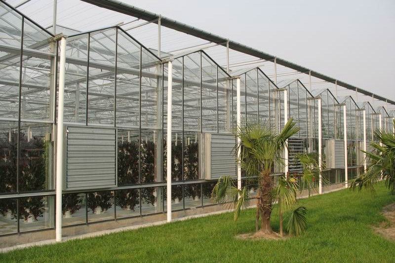 文洛式玻璃溫室為一跨三尖頂、雙坡面小屋頂桁架結(jié)構(gòu)、多雨槽、具有美觀、吊掛能力強、透光性好、空間大、機械性能強等優(yōu)點。
